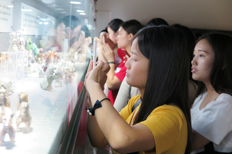 本站讯 近日,根据人才培养方案的课程安排,艺术设计学院2015级视觉传播设计与制作专业,装潢艺术设计2班的学生走进大观博物馆。由专业教师务海涛带领,用“教学做”合一的授课形式,以馆藏文物为素材,实地开展书籍装帧与印刷课程的教学。