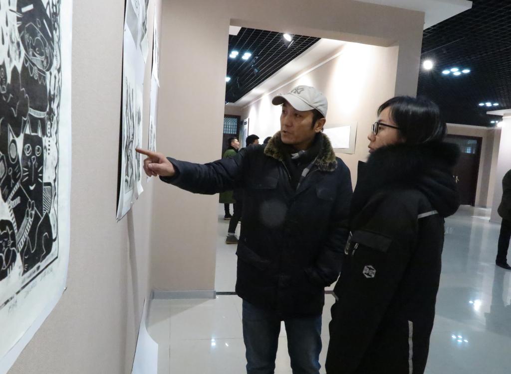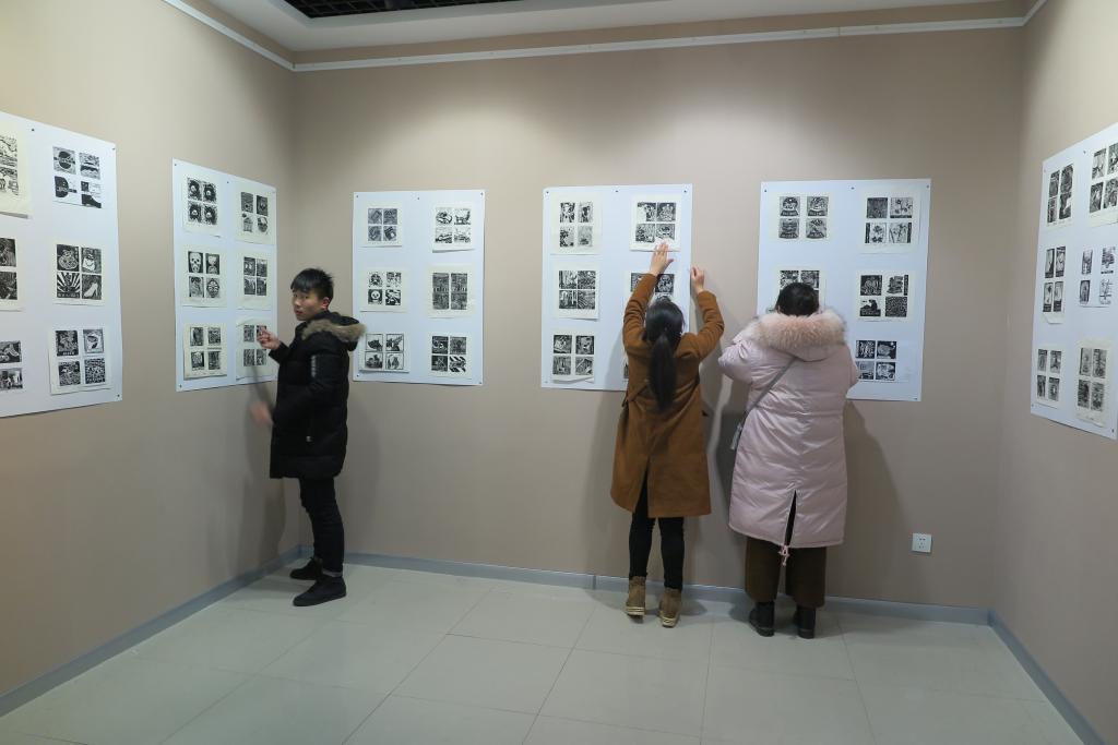 本站讯 近日,由国际商业美术设计师协会、开封市美术家协会、开封市政协书画院、bat365在线官方网站艺术设计学院、宋文化工艺品大师工作室、魏跃进技能人才创新工作室联合举办的“创意无限——2016级艺术设计专业学生版画作品展览”在艺术设计学院二楼展厅开幕。此次展出学生版画作品300余件,有的是学生的课程作业,也有的是在工作室技能大师的指导下完成的创意版画作品。