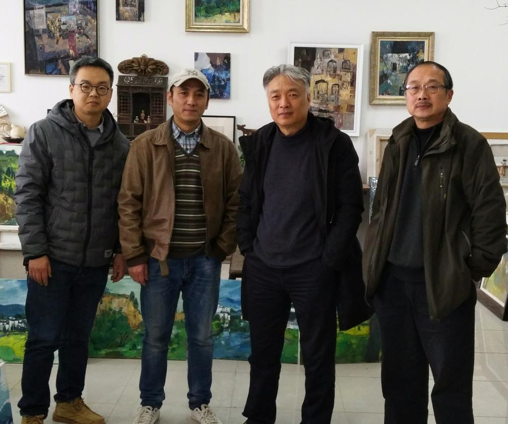 2018年3月17日河南省美术馆馆长、省美术家协会副主席化建国莅临艺术设计学院,就艺术设计学院教师美术创作情况进行调研。艺术设计学院院长魏跃进、艺术设计专业教研室主任孙平、视觉传播专业教研室主任务海涛和学院部分教师陪同化馆长一行参观了学院展厅、画室、专业工作室。