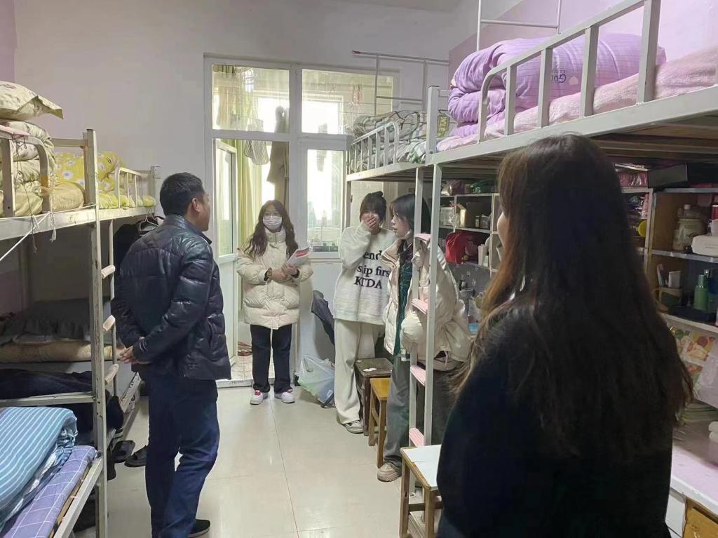 本站讯 新学期开学,为更好的了解学生的生活,督促同学们转变状态,以更好的精神面貌投入到新学期紧张充实的学习生活中,为我院可以更好地开展宿舍管理,落实国家对疫情乙类乙管的政策。2月19日下午,艺术设计学院党总支副书记王龙带领全体辅导员走访了学生宿舍。