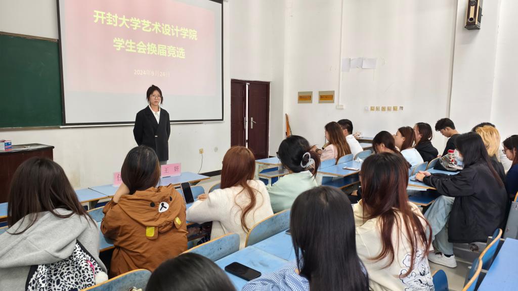 为了进一步推动学院学生工作的创新发展,增强学生会的服务能力和凝聚力,艺术设计学院于9月24日中午在15号楼520教室召开团总支学生会换届大会。出席本次会议的有艺术设计学院党总支副书记王丽,团总支书记王妍,辅导员老师刘霄晗和任鹏飞,本次大会在上届学生会各部门部长共同见证下,圆满落下了帷幕。