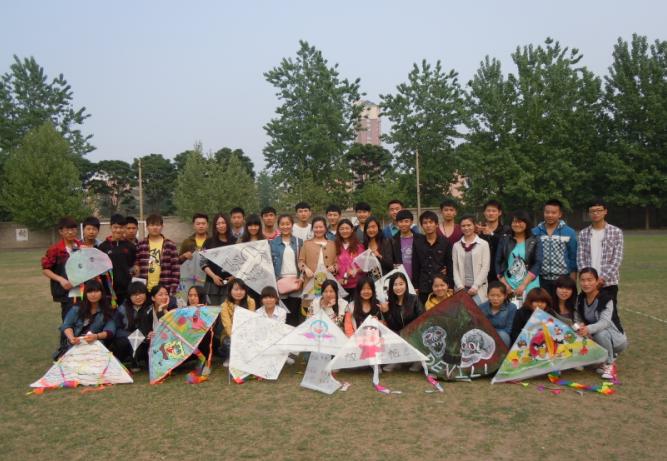 为了培养学生的创新意识、动手能力和团结协作精神,2014年4月16日中午,在综合楼705教室,辅导员赵贝西带领2013级旅游工艺品设计与制作班全体同学举办了一次风筝创意大赛特色班级活动。