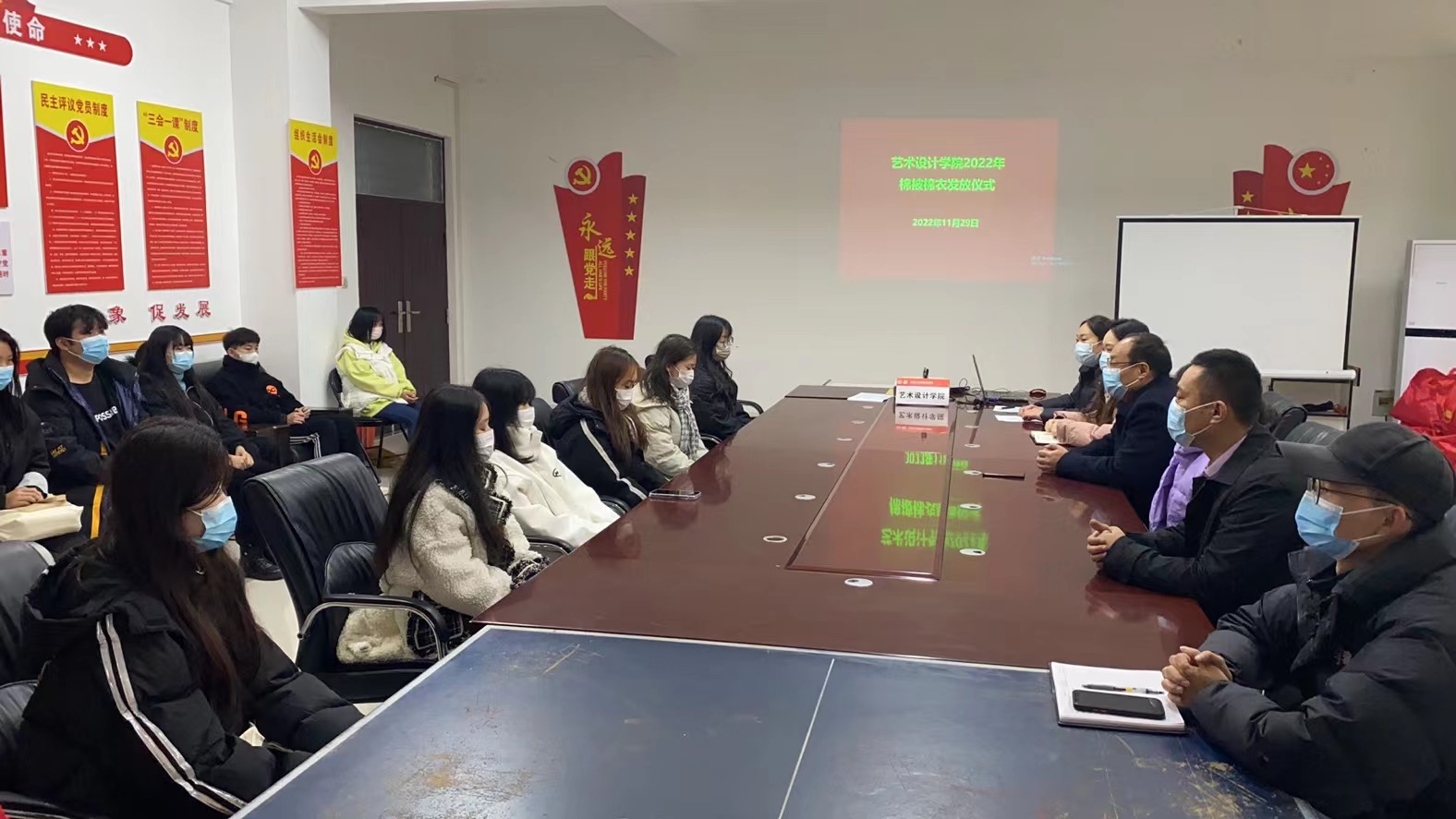 本站讯 11月28日上午,艺术设计学院在9号楼209会议室举行了冬季爱心资助棉被棉衣发放活动。艺术设计学院党总支书记赵志成、院长张富云、副书记王龙、团总支书记孙巳尧、全体辅导员及22名国家助学金A类新生参加了本次活动。