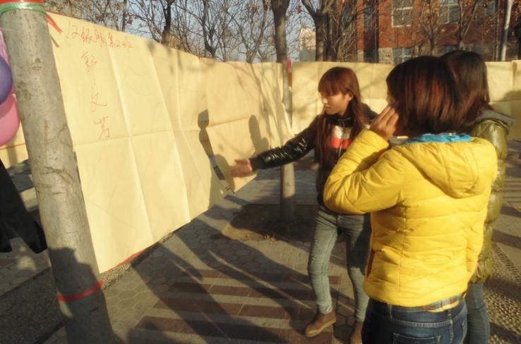 2013年12月12日下午,艺术设计学院12级服装2班在明德湖畔举办了“班级特色活动”。