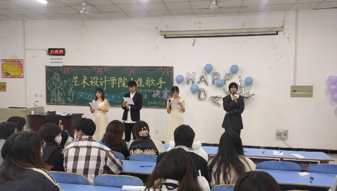 为了丰富校园文化生活,营造积极向上、健康文明的校园文化气氛,为学生提供展示自己才华的舞台。艺术设计学院文艺部于2021年11月28日晚上七点在15号楼519教室举行“十佳歌手”决赛活动。活动特邀艺术设计学院学生会各部长以及各院文艺部部长、民谣社作为此次活动的评委。