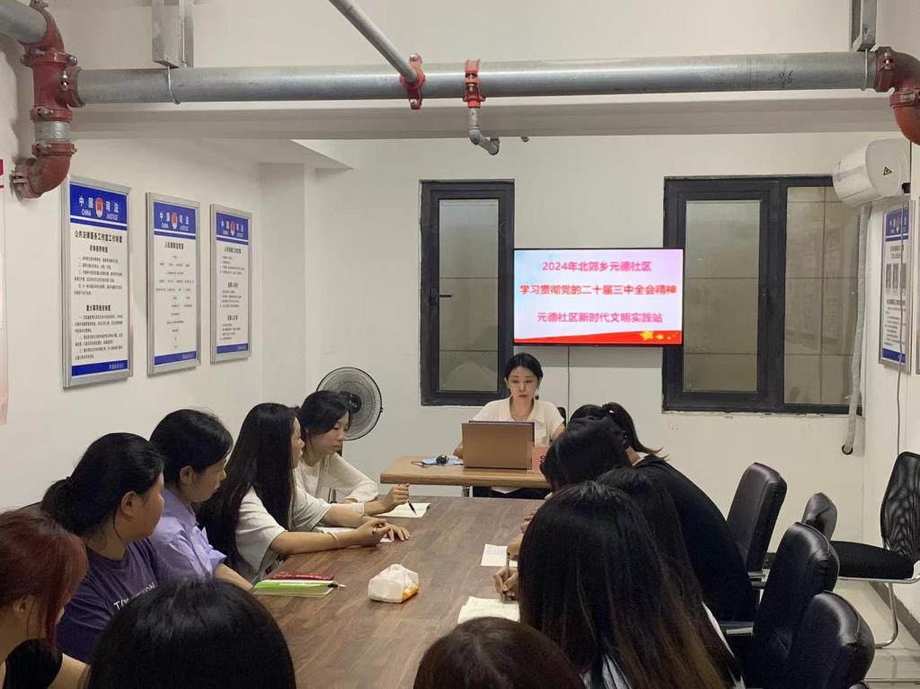本站讯 为深入学习贯彻党的二十届三中全会精神,深刻把握核心要义和精神实质,9月20日,艺术设计学院组织20余名志愿者前往元德社区开展《学习贯彻党的二十届三中全会精神》宣讲会,同时参与了“垃圾分类 青春助力”志愿服务活动。