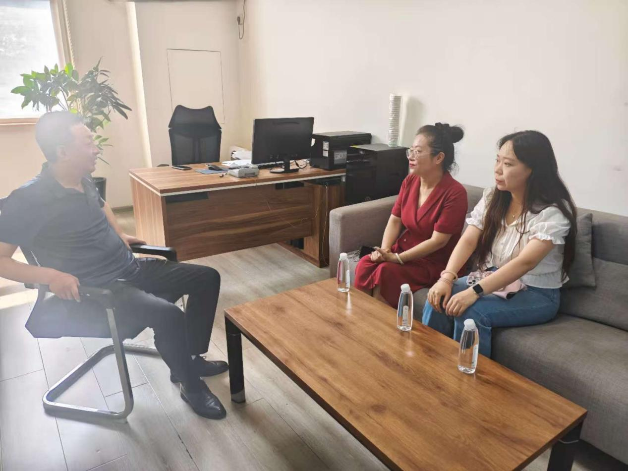 在开封市教育体育投资集团有限公司,副总经理樊晓辉介绍了公司的运行模式和发展之路,袁颖介绍了学院的办学特色、人才培养计划以及学生实习就业意向。双方围绕校企合作模式、人才联合培养、实习基地建设等展开讨论。