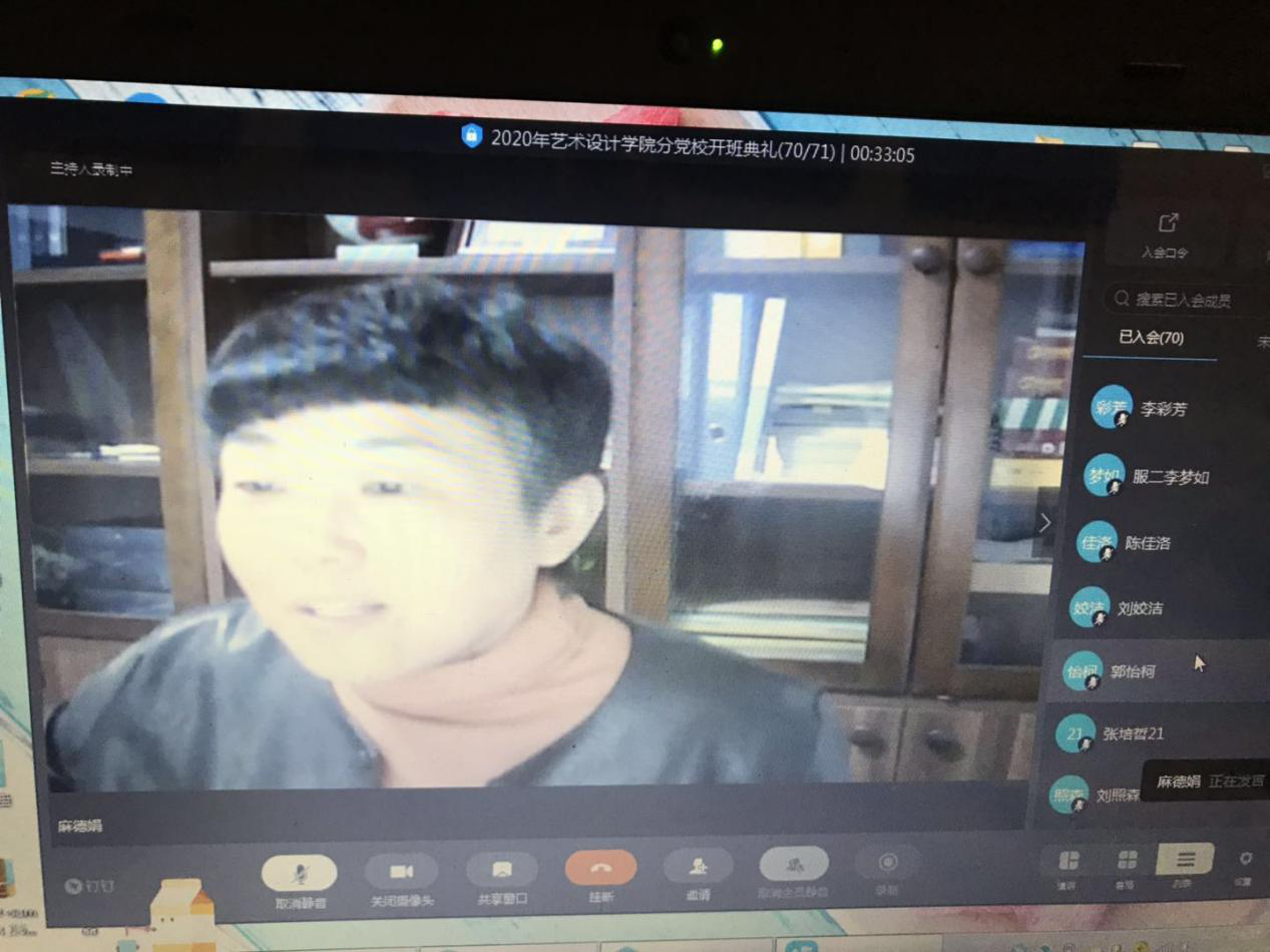 本站讯,经过前期认真的筹备和组织,为加强对入党发展对象的培训,做好我院学生党员的发展工作,2020年4月17日bat365在线官方网站艺术设计学院举办了第12期发展对象业余党校开班仪式!新冠肺炎疫情期间,学院学生党支部响应党总支号召,以线上学习这样一种特殊形式展开,既隆重又赋予此次开班仪式不同的含义!出席此次开班仪式的领导和老师有学院党总支书记王江然、学院党总支副书记麻得娟、学生党支部书记孙巳尧、 组织员王静、宣传员秦迪和新生辅导员郭梦聪。 学院全体发展对象共同聆听了此次开班仪式。会议由组织员王静主持。