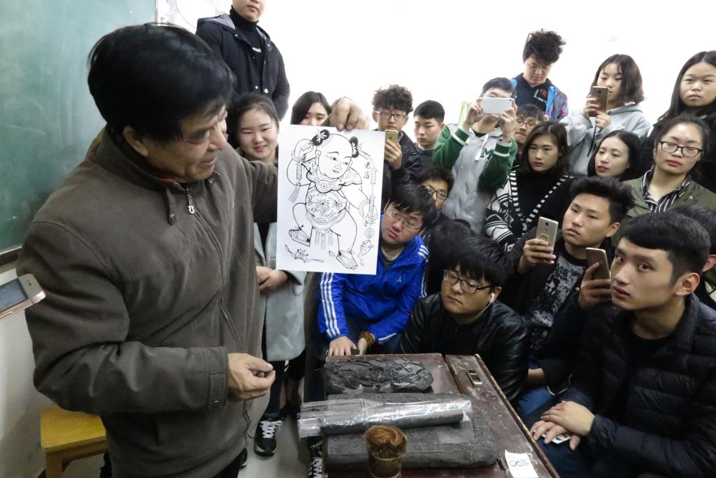本站讯 为了培养学生的创新实践能力,推动非物质文化遗产的传承与发展,服务开封“文化+”建设,按照宋文化工艺品技能大师工作的培养计划,邀请河南省非物质文化遗产传承人、开封朱仙镇年画艺术馆馆长任鹤林来到艺术设计学院为学生讲学授课。