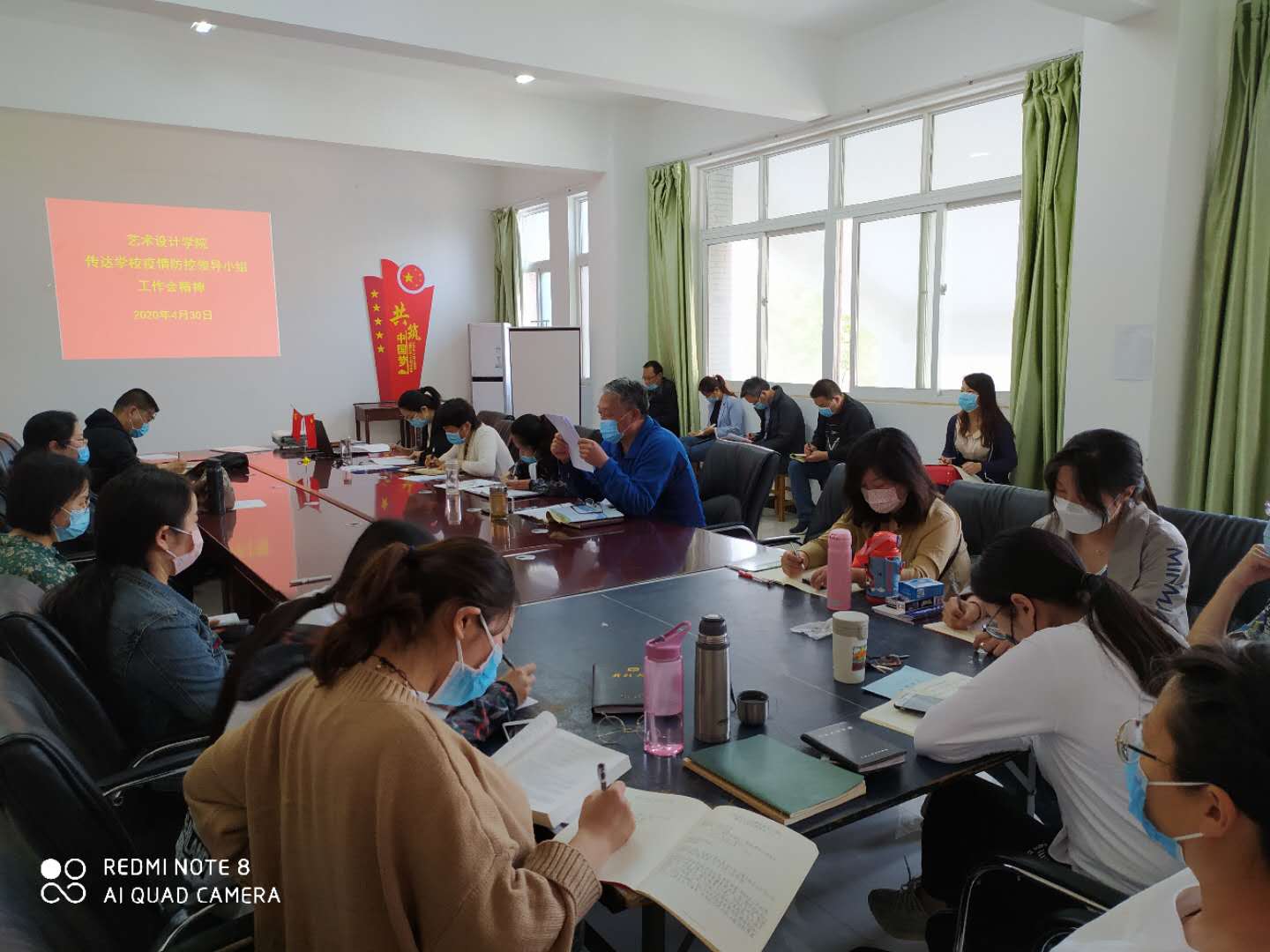 4月30日下午,艺术设计学院在二楼会议室召开全体教师会议。会上,王江然书记传达了学校疫情防控领导小组工作会精神,并提出以下要求。