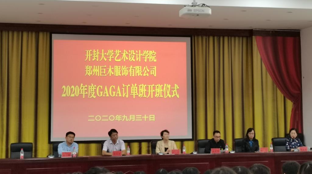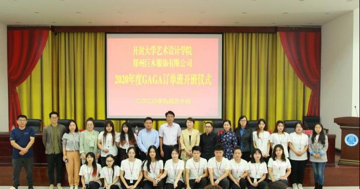 9月30日,艺术设计学院与郑州巨木服饰有限公司2020年度共建“GAGA订单班”开班仪式在校行政楼一楼会议厅隆重举行。bat365在线官方网站副校长赵辉、郑州巨木服饰有限公司人事部总监徐照军、校相关行政部门领导、企业工作人员、艺术设计学院部分师生及GAGA订单班全体学生参加了此次大会,会议由艺术设计学院副院长张富云主持。