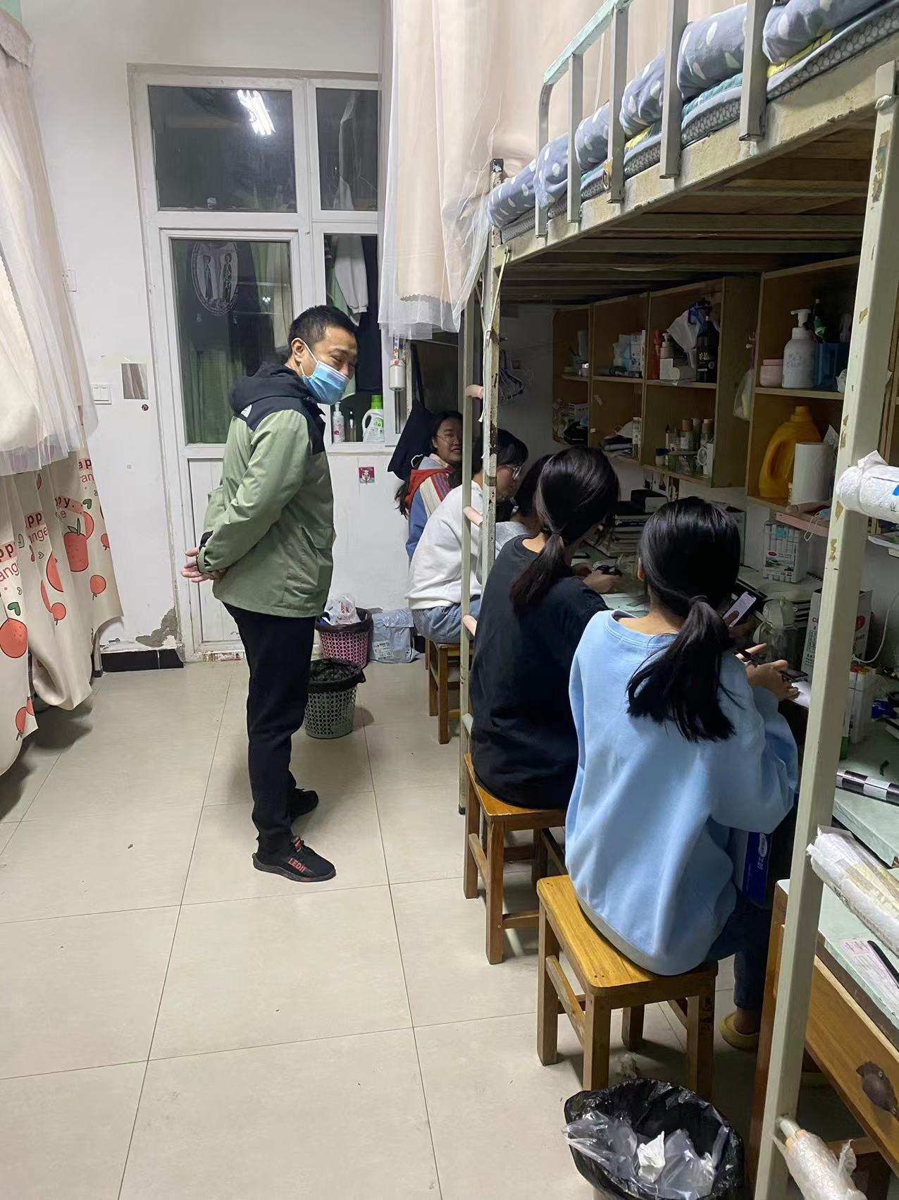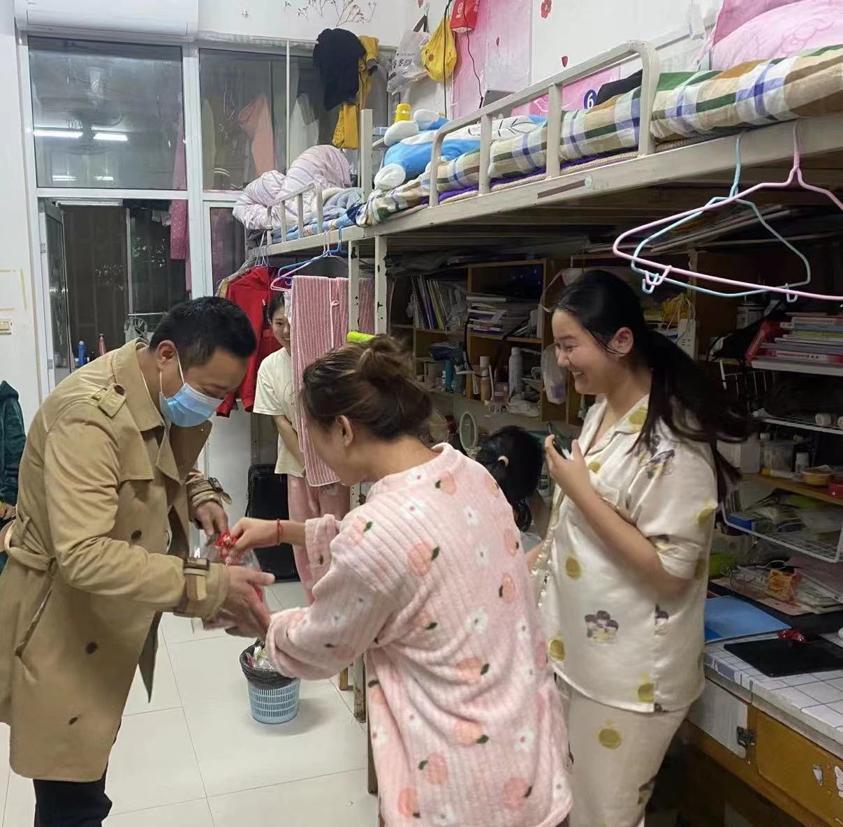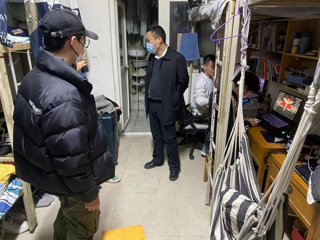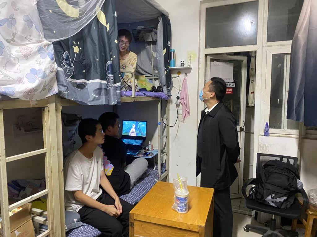 自9月24日以来,学院党总支副书记王龙每天带领辅导员深入2#、6#、7#、8#、11#学生宿舍,走到学生身边,了解学生所思所想。一句句“ 同学们,我们并肩而行。”“疫情当前,你们在哪,我就在哪!”为学生注入了强大精神力量,提振了学生战胜疫情的强大信心。