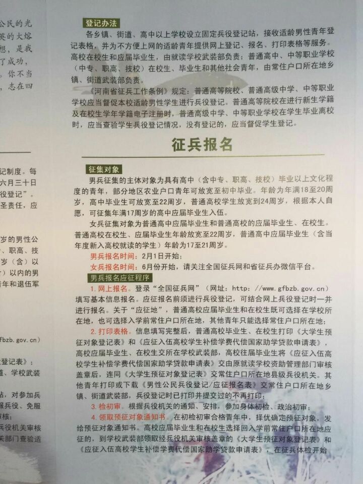 开封市2016年兵役登记及征兵报名政策公告
