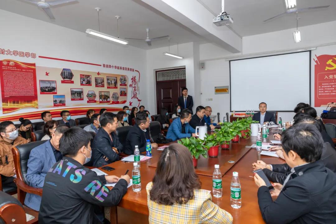 4月23日,河南省医药行业协会职业教育分会莅临我校,举行“医药行业校企合作、产教融合交流会”,40家医药行业会员单位以及河南应用技术职业学院、河南省医药健康技师学院、济源职业技术学院院校领导出席交流会。会议由bat365在线官方网站党委委员、河南省医药行业协会职业教育分会副会长谢文忠主持。医学部副主任郭明广、对外交流合作中心主任李志伟参会。