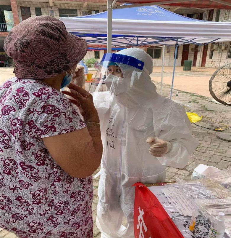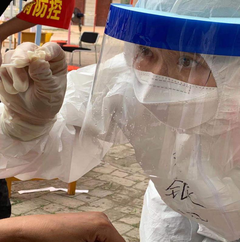 每一次样品采集都是与待检人员最近距离的接触,刘银凤老师毫不畏惧,充分发挥自己的医学专业技能,以细致入微的工作战斗在核酸检测“第一线”,协助社区核酸检测工作的顺利完成,为开封市的疫情防控贡献自己的力量。