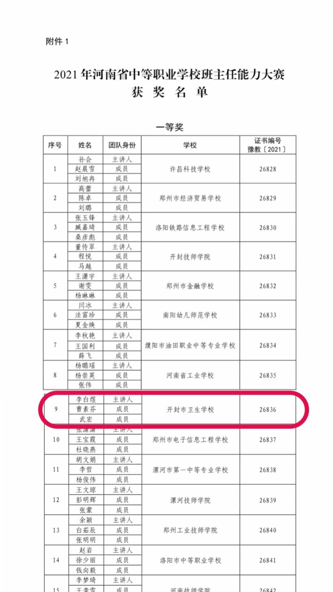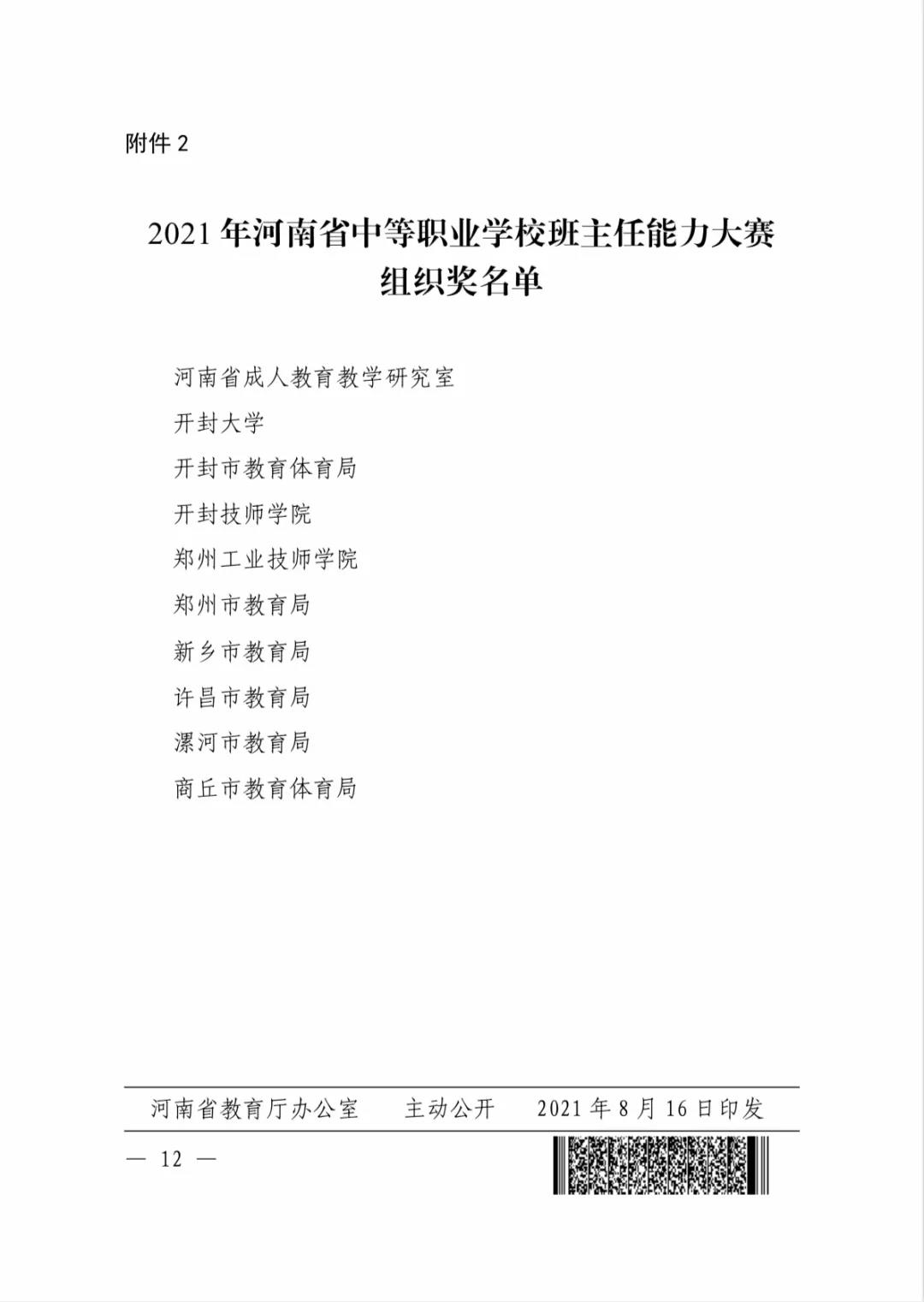 关于公布2021年河南省中等职业学校班主任能力大赛获奖名单的通知
