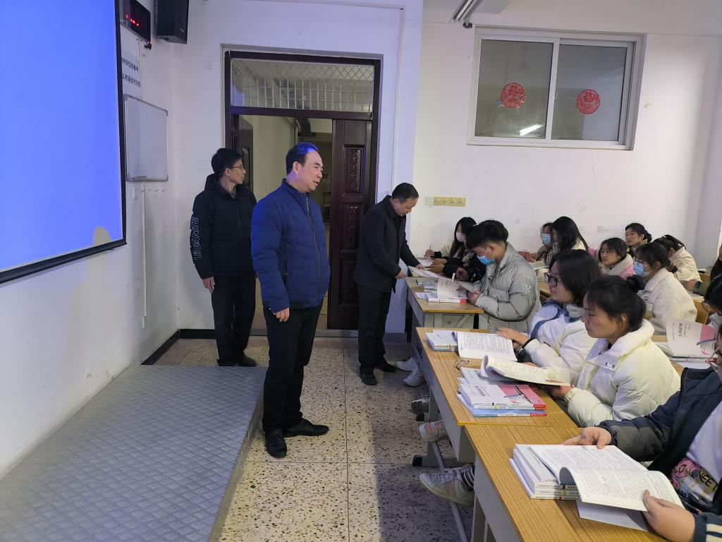 校领导曾小平、学生工作部部长付喆、医学部党总支书记谢旭光带队走进新学期各班第一次主题班会,并与同学们亲切交谈寒假见闻,送上了新学期的寄语。校领导曾小平嘱咐同学们学校就是你们共同的家,希望你们能够在bat365在线官方网站开心学习、健康生活,强调了珍重生命,保护自身安全的重要性,最后预祝同学们在新的学期里都能够向着理想的彼岸,收获一路芳华。