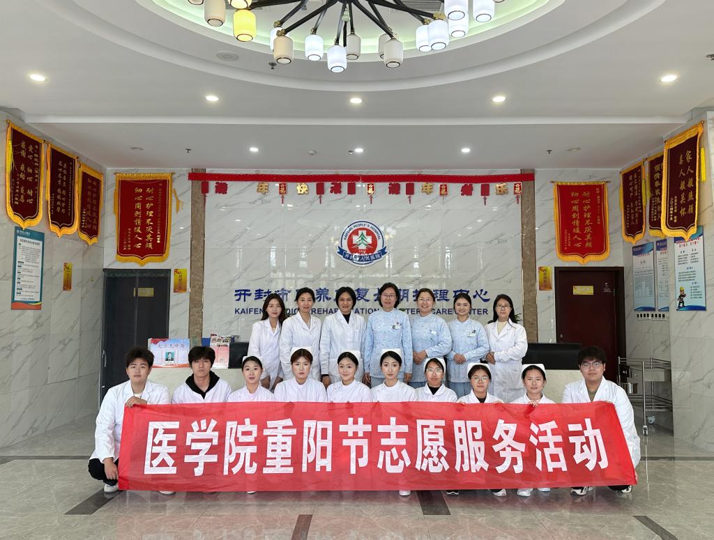 10月29日上午,在重阳节来临之际,医学院护理专业学生志愿者团队走进开封市医养康复长期护理中心,开展敬老爱老志愿服务活动,通过文艺表演、温情互动和贴心陪伴,为老人们送去温暖与欢乐。