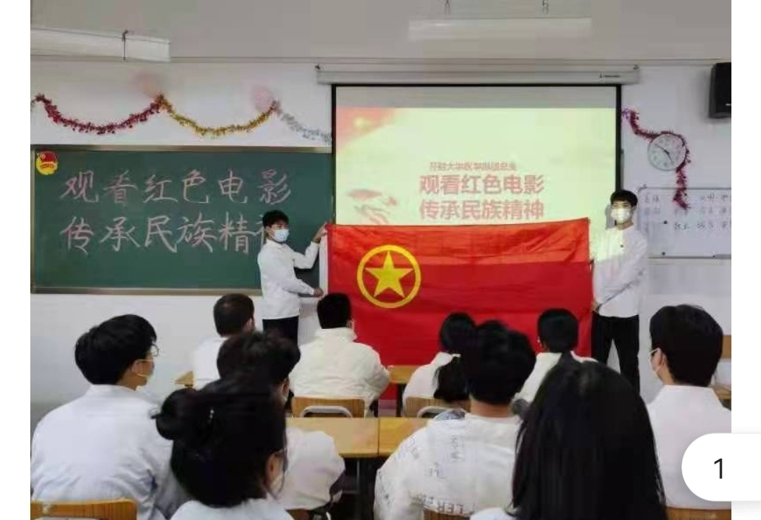 同学们在医学部前集合,全员佩戴口罩,服装统一,在医学部团总支学生副书记李梦涵的带领下井然有序的观看电影。在新时代的我们,没了战乱的恐慌,我们的日子也在越来越好,但是我们的血液依旧流淌着爱国的情愫。我们为之奋斗,为之努力,传承民族精神,一代又一代,绵延不休。