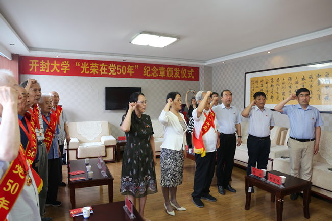 我校此次获得“光荣在党50年”纪念章的老党员共有13人,其中年龄最大的92岁,党龄最长的68年。举行颁发仪式是学校开展系列庆祝建党百年活动、推进党史学习教育的重要内容,传达了党中央对老党员的关心关爱,表达了对老党员们的崇高敬意,激励全校广大党员干部以更加昂扬姿态奋力开局“十四五”、开启新征程。