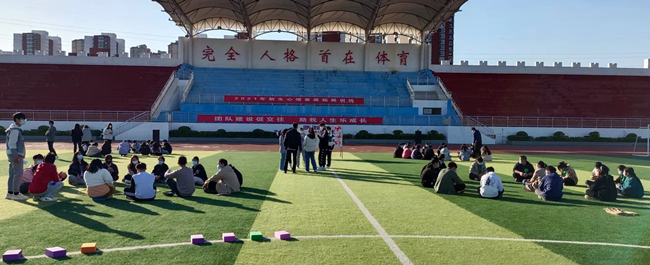 本站讯 11月10日下午,我校心理健康教育中心在体育场围绕“团队建设促交往,助我人生乐成长”主题开展了“2021级新生心理素质拓展训练”团建活动。校党委书记陈灿,校党委委员、工会主席成芳到场指导,活动由学生工作部副部长梁波主持。