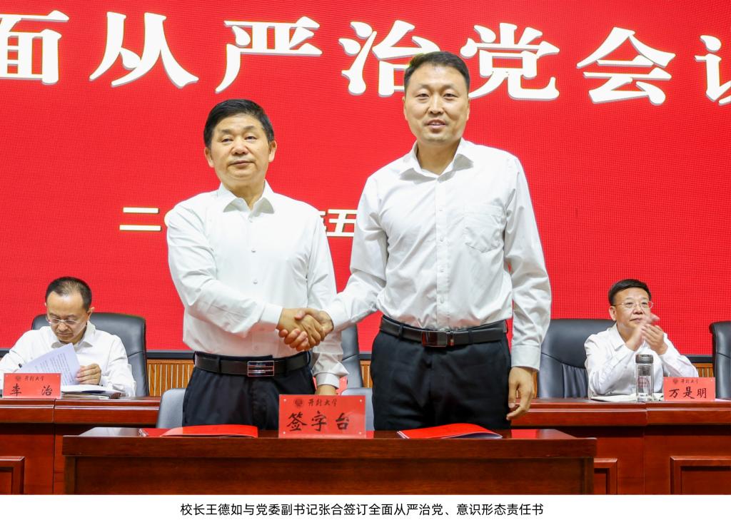 校纪委书记石超亭安排部署了2025年纪检监察工作校党委副书记张合要求,要提高站位,强化责任,优化作风,狠抓落实。会上,王德如与校领导班子成员现场签订了全面从严治党、意识形态责任书,各院、部负责人向校长递交了年度目标任务责任书。