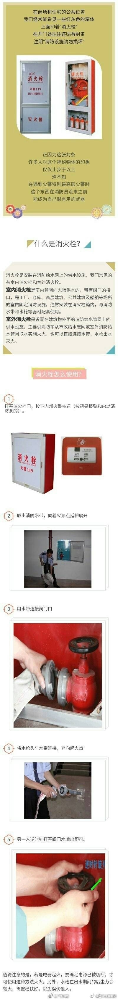 在商场和住宅的公共位置,经常能看见一些红灰色的箱体,上面印着“消火栓”。你好奇什么是消火栓么,它是怎么使用的呢?戳图,涨知识~