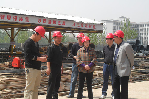 4月15日下午,校党委书记张新梅,在副校长、指挥部指挥长耿广利及指挥部相关负责人的陪同下先后到BT项目、图书馆施工现场视察指导工作。