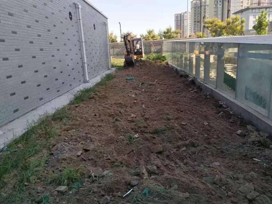 1、校区东北部景观工程(二期):北围墙砌筑、瓷砖粘贴完