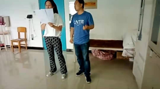 我处黄瑜老师和罗震梁老师利用午休时间排练歌唱祖国活动。