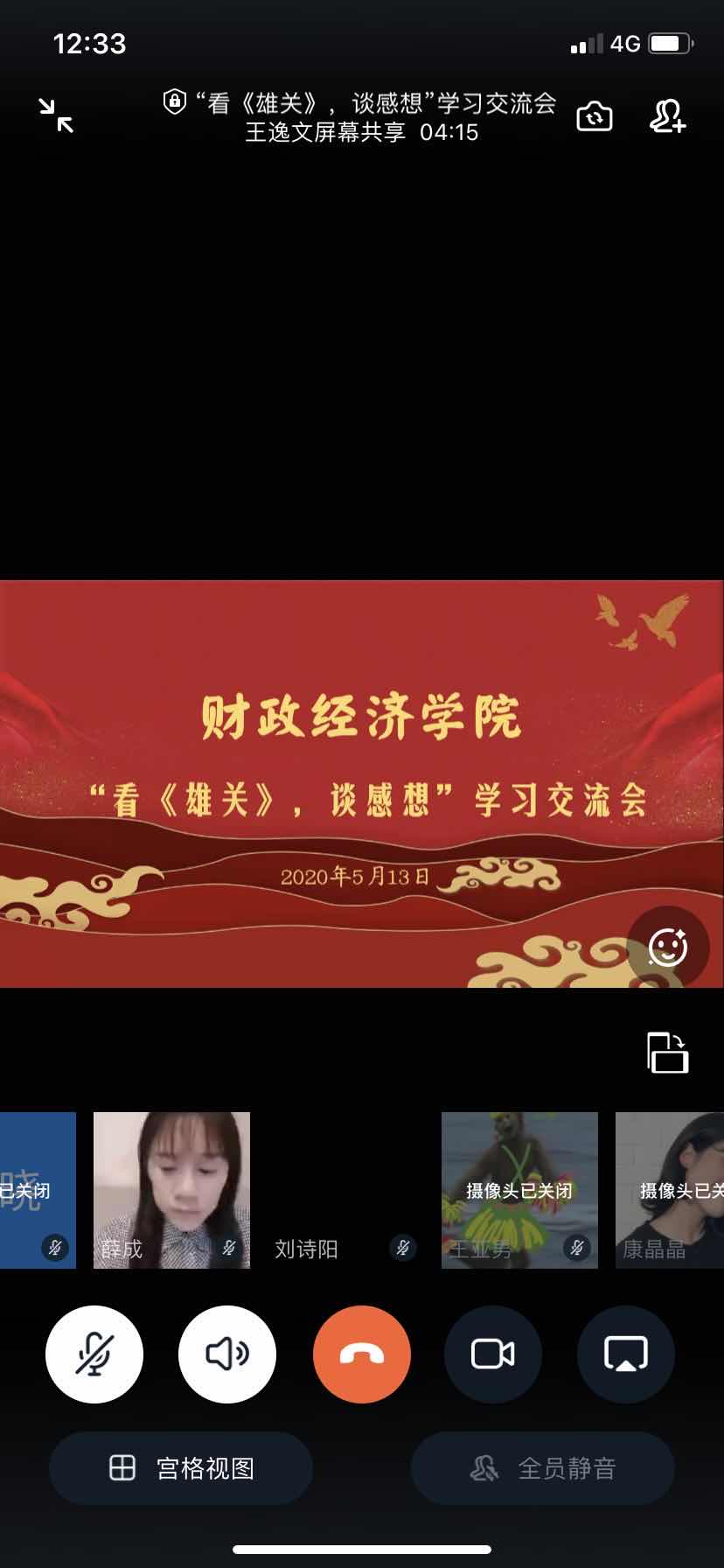 为深入学习宣传贯彻习近平总书记关于统筹推进疫情防控和经济社会发展工作的重要论述,财政经济学院组织全体师生认真收看由省委宣传部、河南广播电视台联合制作的大型电视政论片《雄关》。5月13日中午,学院团总支通过钉钉会议组织召开“看《雄关》,谈感想”学习交流会,院团总支书记薛成,2019级辅导员潘博博、王铭瑾以及团学联全体成员参与活动。