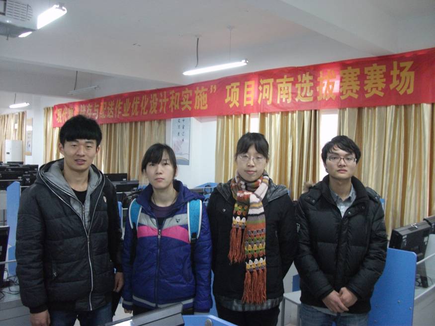 在学校的大力支持下,我院物流管理专业学生刘得周、安西勇、禹宇翠于2012年12月15-16日参加了在郑州举行的第六届全国职业院校技能大赛高职组河南省选拔赛“现代物流储存与配送作业优化设计和实施”项目,凭借完美的方案设计和娴熟的操作技能,在全省21支参赛队伍中脱颖而出,荣获一等奖,并取得代表河南省参加国家级比赛的资格。在本次大赛的备战过程中,指导教师乔薇和李韫繁悉心指导,参赛学生精心准备,教师和学生的专业理论水平和实践能力有了很大提高,为此次比赛获得优异成绩打下了良好的基础。