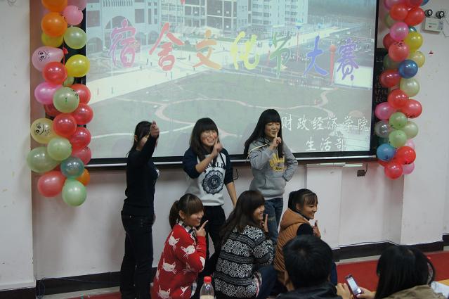 2012年11月5日晚,我院举行财经风采展现月系列活动——宿舍文化节决赛。教室中一派热闹的氛围,但这依然掩饰不住同学们心里的激动。首先进行时的是变废为宝的节目,同学们展示了自己寝室同学一起集思广益做出来的作品,第二个环节是寝室才艺展示,同学们各显神通,有的整个寝室一起动员上台翩然起舞,有的在温馨又搞笑的PPT映衬下引吭高歌,不得不让人惊呼:“我们学院真是卧虎藏龙之地啊!”观众与主持的互动更是将现场推向了高潮。