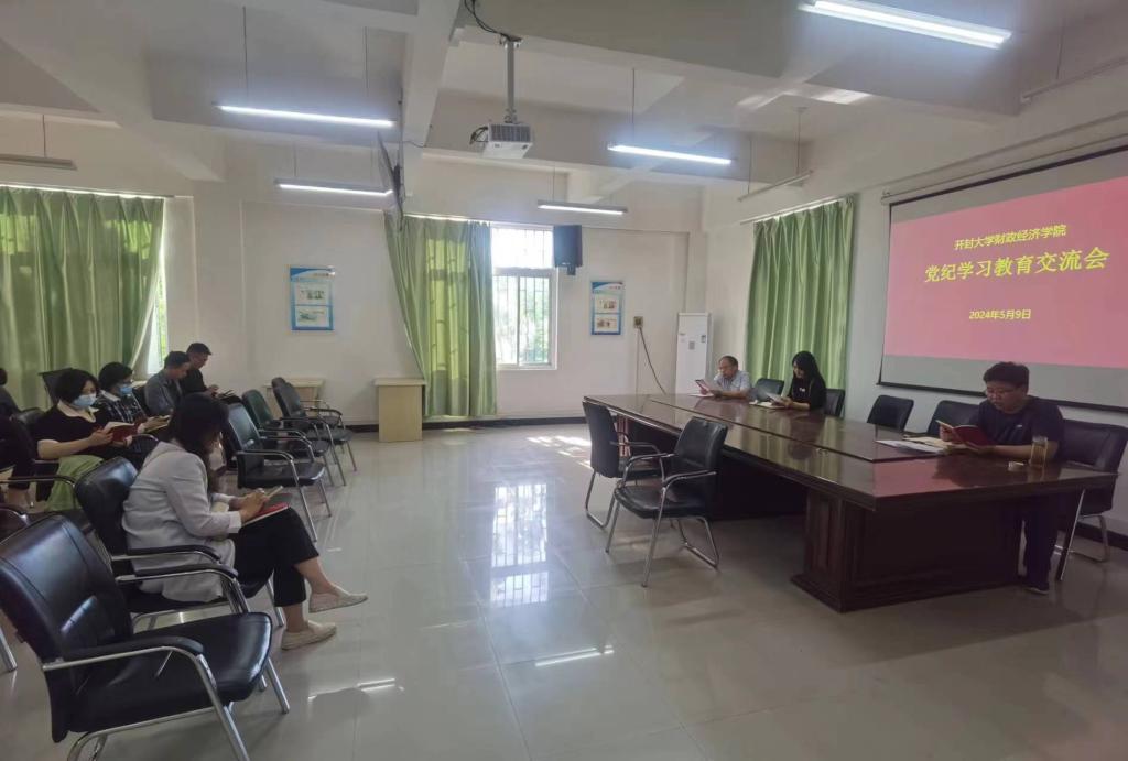 5月9日下午,财政经济学院在10号楼214会议室召开党纪学习教育读书班交流会,深入学习贯彻习近平总书记关于党的纪律建设的重要论述及关于党纪学习教育的重要讲话和指示精神。党总支副书记杨强主持,学院党政领导班子成员、全体党员参加。