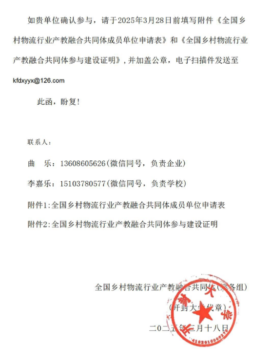 共同体将面向乡村物流行业急需的技能型人才,全方位融合行业、企业、高等院校和科研院所等优势资源建立健全实体化运行机制,促进产教供需高效对接、联合开展人才培养、协同开展技术攻关、组织开发教学资源,推进乡村物流行业高质量发展,以期形成行业示范引领作用。