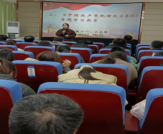接着,学院党总支副书记马驰同志领学中央八项规定精神及习近平总书记主题教育最新讲话;党总支书记吴娟同志领学《中国共产党纪律处分条例》。