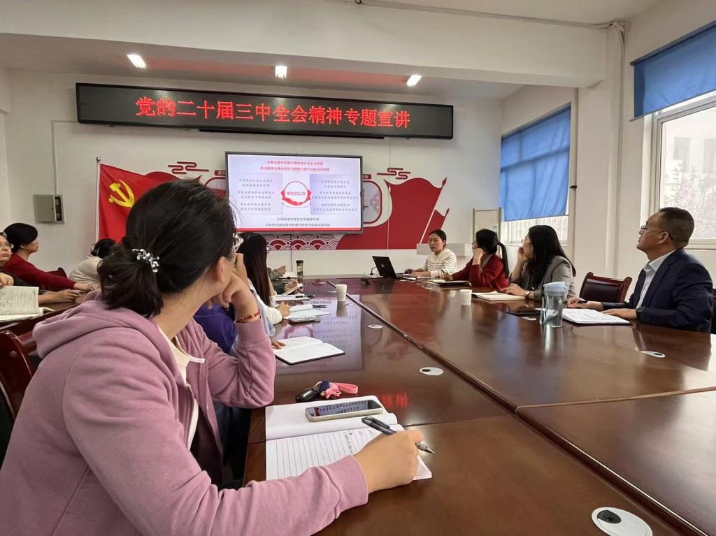 为全面深入学习领会党的二十届三中全会精神,扎实推进学习宣传贯彻工作,材料与化学工程学院党总支积极响应学校党委号召,于10月17日邀请参加市委党的二十届三中全会精神宣讲团成员、马克思主义学院教师王琳琳到7号楼201会议室开展宣讲活动。活动由教工支部书记王丽主持,全院教师参加。