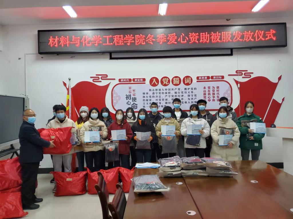 11月28日,材料与化学工程学院在7号楼201会议室举行了“情之所至,爱之所往”受助学生被服发放仪式。院党总支书记侯彦喜、学院全体辅导员和22级受助学生参加本次活动。