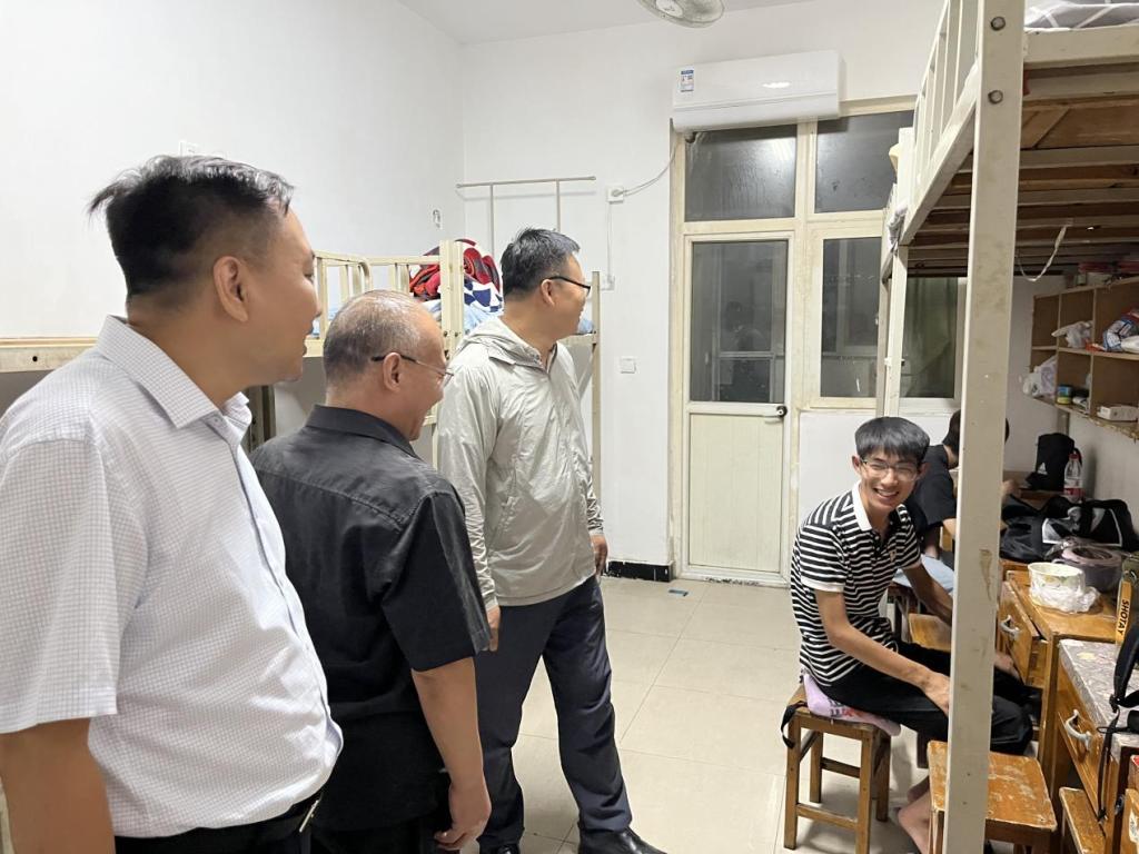 暮色降临,院部领导心系学生,由材化学院党总支书记侯彦喜、院长韩艳霞带队,副院长、团总支书记及全体辅导员参与,深入新生宿舍进行走访。院部领导亲切与学生进行交谈,详细询问学生宿舍情况,并嘱咐学生注意安全、搞好卫生,养成好习惯,为三年大学生活开个好头。