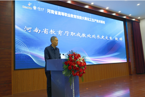 河南省教育厅职成教处处长史文生在讲话中引用习近平总书记“以教育之力厚植人民幸福之本,以教育之强夯实国家富强之基”原话,希望各高校积极开展以赛促学、以赛促教,为学生提供展示技能、切磋技艺的平台,切实提升学生的职业素养和技能水平,持续培养更多高素质技术人才、能工巧匠和大国工匠。