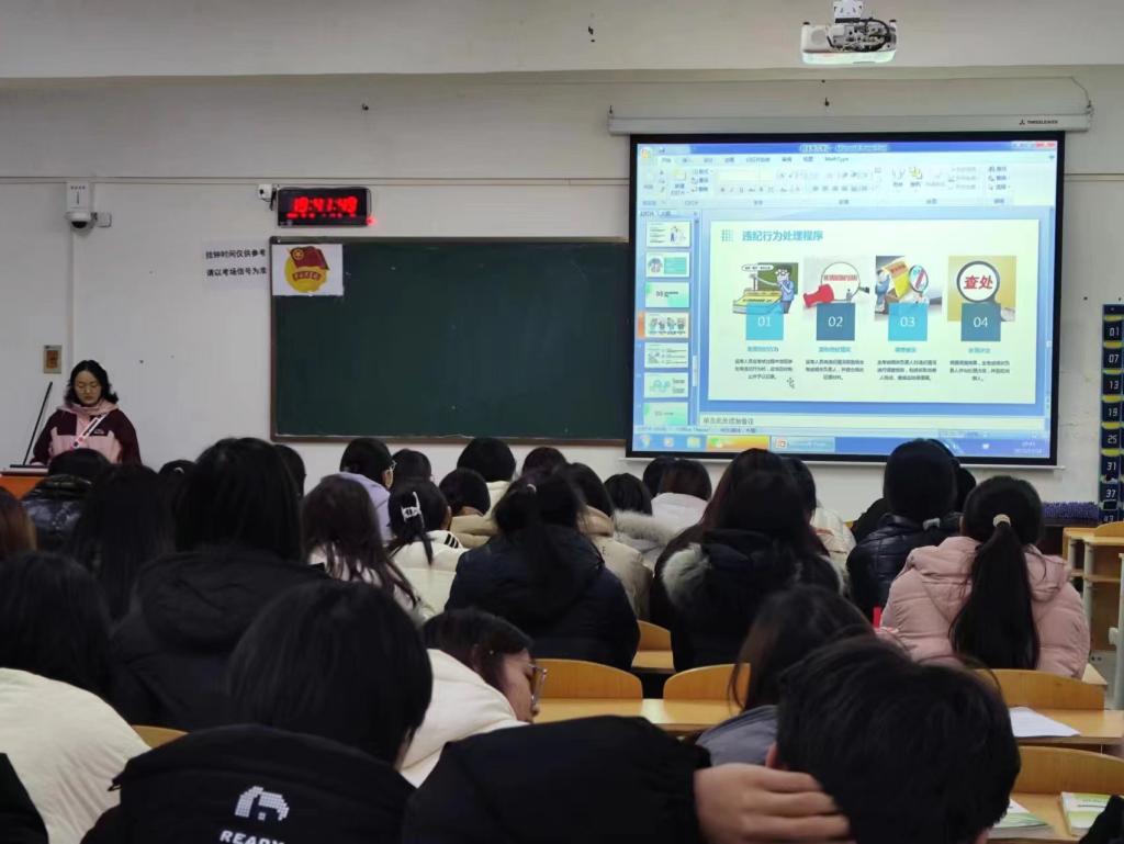 为进一步加强考风考纪工作,增强学生诚信意识,端正学习态度,严肃考风考纪,弘扬诚信文化、涵养学风、端正考风,引导广大同学认真备考、诚信应考,营造“诚之养德,信之立身”考试氛围,材料与化学工程学院各班级于12月29日开展“诚信考试教育”主题班会。