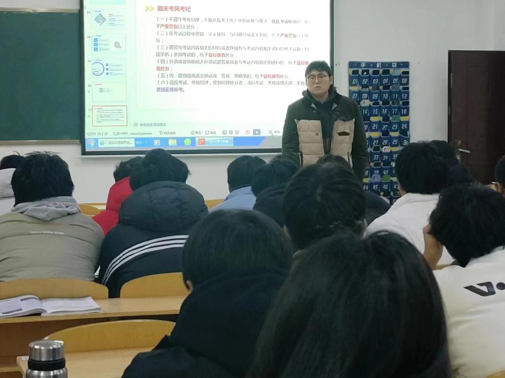 我院党总支书记侯彦喜强调,遵守考纪、诚信应考是每一位学生应保持的品质。希望同学们能够正确认识考试的意义,端正自身态度,严肃考风考纪。正确对待成功与失败,不因一时之利而失诚信之义。