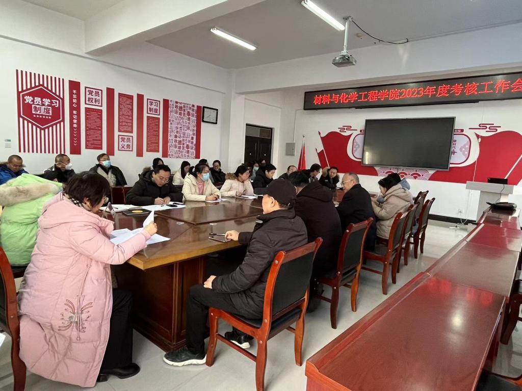 根据《bat365在线官方网站关于认真做好2023年度考核工作的通知》[开大校发(2024)1号]文件要求,材料与化学工程学院于2024年1月11日上午9点在7号楼201会议室召开2023年度考核会,会议由我院侯彦喜书记主持,院部全体老师参加。