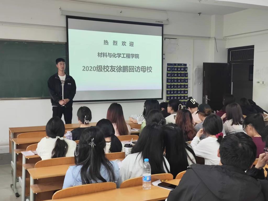5月12日,材料与化学工程学院迎来了一场别开生面的校友讲座。本次校友讲座邀请了20级优秀校友徐鹏分享其职业成长与人生感悟。他目前就职于业内知名食品企业——好利来甜星公司。在毕业后的两年时间里,他从储备店经理实习生一路成长到现在的地区经理,徐鹏同学此行把自己实习就业中最真实的学习成长过程及工作经验心得分享给学弟学妹们,为他们们带来了宝贵的职业建议和人生感悟。