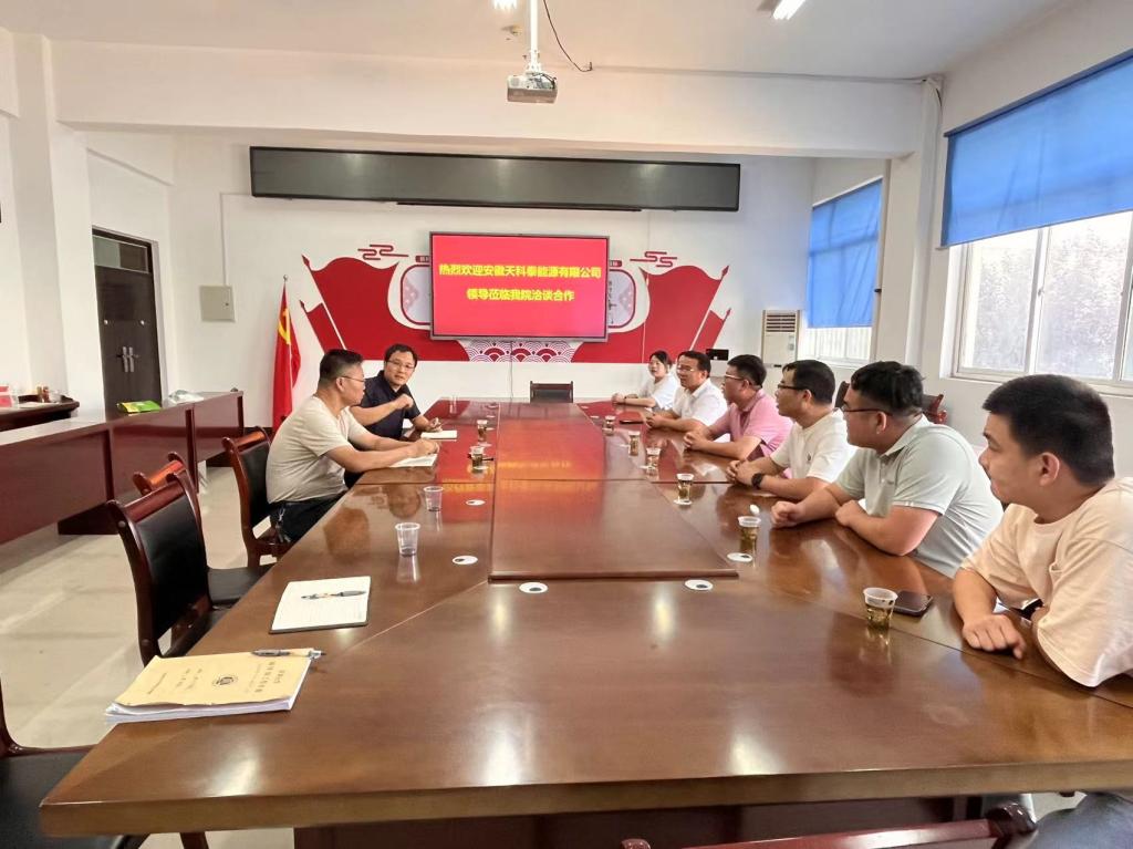 8月22日下午,我院与安徽天科泰新能源有限公司在201会议室举行校企洽谈合作交流会。安徽天科泰新能源有限公司董事长任治国一行、副院长王明瑞、副书记武志远、党政办公室主任王勇兵及23级辅导员李浩然与会。