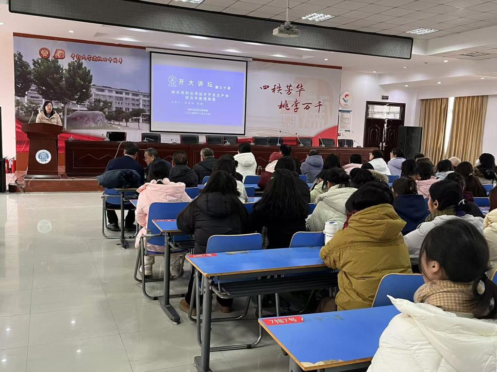 12月19日下午,由河南大学张经纬教授主讲的“开大讲坛”第三十讲——《纳米材料应用技术开发及产学研合作路径探索》在 8号楼报告厅成功举办。此次活动由材料与化学工程学院主办,院长韩艳霞主持,全院350余名师生认真听取了讲座。