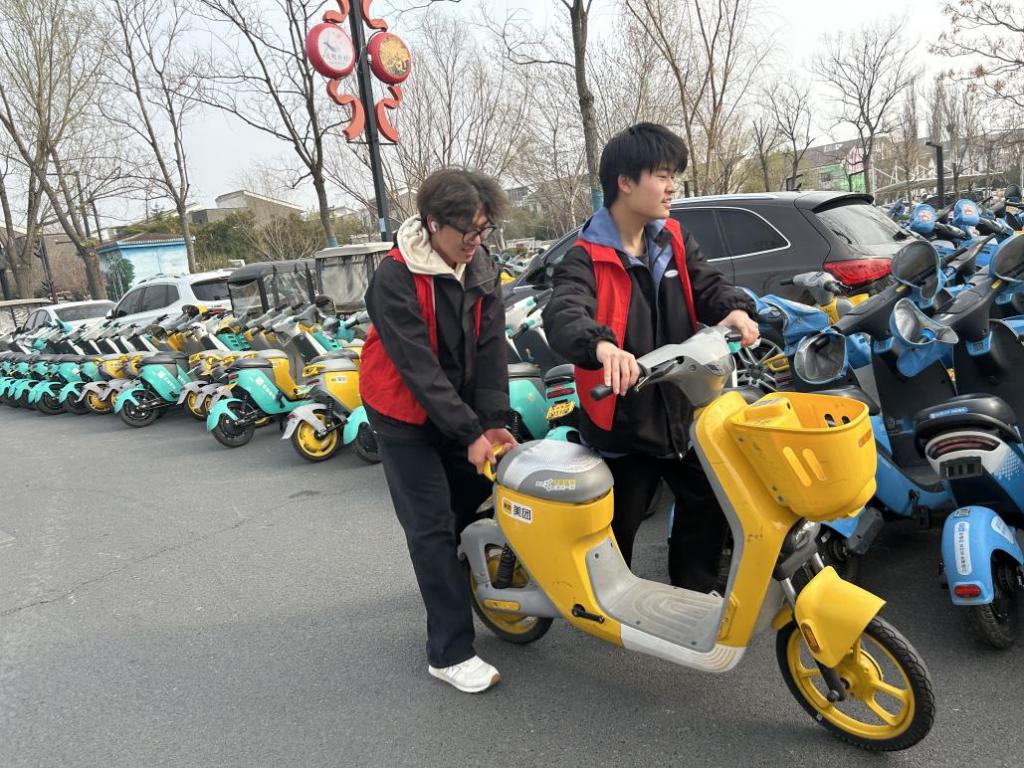 活动中,志愿者们身着统一的红色马甲志积极行动,将随意停放在机动车道、人行道、盲道及绿化带等影响车辆通行的共享电动车挪至规定停车区域。同时,他们还向市民和游客普及了共享电动车规范停放的重要性,提醒自觉遵守相关规定,共同维护良好的市容市貌。