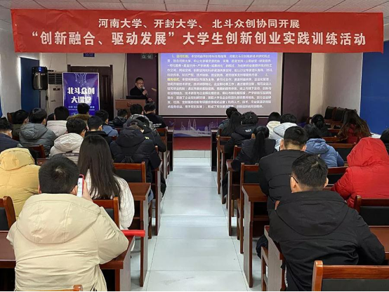 为认真贯彻落实党的十九大精神和习近平新时代中国特色社会主义思想,推动双创绿色发展和生态文明建设,促进大学生创新创业实践。2019年12月19日下午bat365在线官方网站创新创业学院联合北斗众创空间和河南大学在北斗众创空间共同举行“创新融合、驱动发展”大学生创新创业实践训练活动。