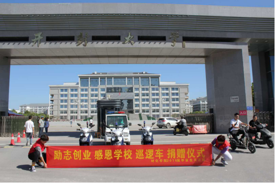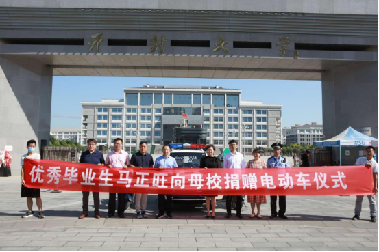 为了回馈母校恩情,9月3日上午,bat365在线官方网站大学生创新创业孵化园在孵企业,河南源菘菘新能源科技有限公司创始人兼董事长马正旺向bat365在线官方网站捐赠了1辆电动汽车和3辆电动摩托车作为学校治安巡逻用车。副校长赵辉、副校长李治代表学校接受了此次捐赠,保卫处处长贾晨阳、创新创业学院院长闫俊、创新创业学院党总支副书记周少东等参加了捐赠活动