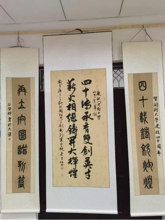 此次作品展创客们以我校建校40周年为基,以自己创业产品为柱,以创新为体创意为用向母校进行献礼。这次作品展共收录40余件作品,以文创和科创作品为主。其中,99度创客空间创客们用自己所学的专业知识,采用激光切割和3D打印技术制作了一批科创类展品;夏朵文化的邓瓷技艺复烧人王玉卓同学,为此次校庆设计制作了龙首杯、福禄瓶等系列文创展品;微行智慧校园负责人优秀毕业生马正旺同学,在向我校捐赠了一辆电动巡逻车后,又向我院捐赠了一台五十寸液晶电视,同时作品展中展示了自己公司现在推广使用的新能源电池;翰墨堂负责人谷登辉等创客为我校40周年校庆书写了系列书法作品,还有许多创客以自己的方式方法向学校献礼!